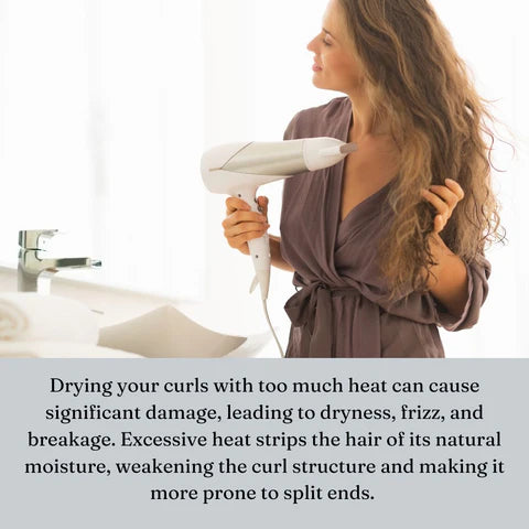 Drying your curls with too much heat can cause significant damage, leading to dryness, frizz, and breakage. Excessive heat strips the hair of its natural moisture, weakening the curl structure and making it more prone to split ends.